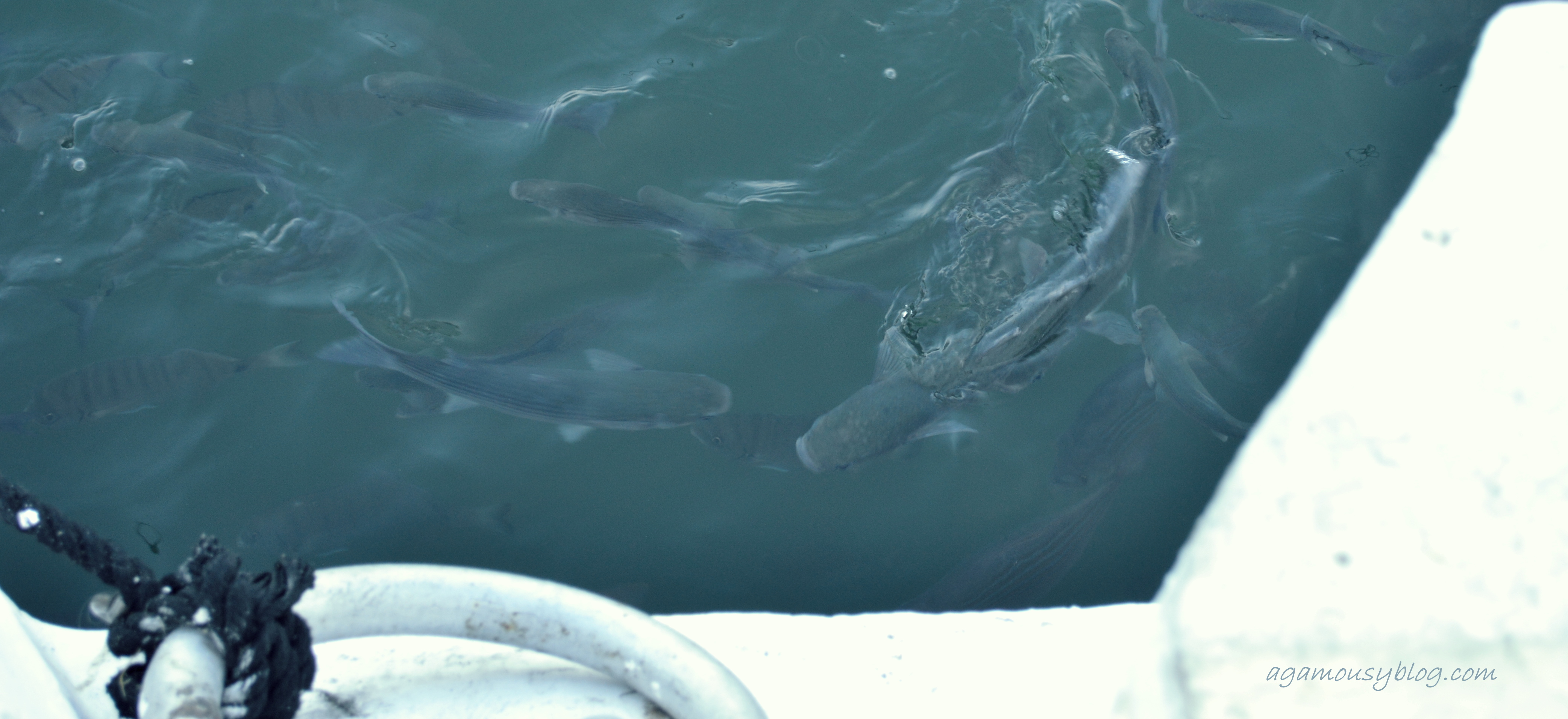 Z doświadczenia wiemy, że nie należy zjadać brzegów pizzy, tylko odkładać je na bok do serwetki, ponieważ na zewnątrz czeka stado wygłodniałych rybek. Wyglądają trochę jak mniejsza wersja suma – są czarne, z wąsami, ale zdecydowanie mniejsze niż sum z polskich wód :) Więc wychodząc z Picasso, warto przecisnąć się między parkującymi przy nabrzeżu Ferrari czy Porsche i nakarmić głodomory.