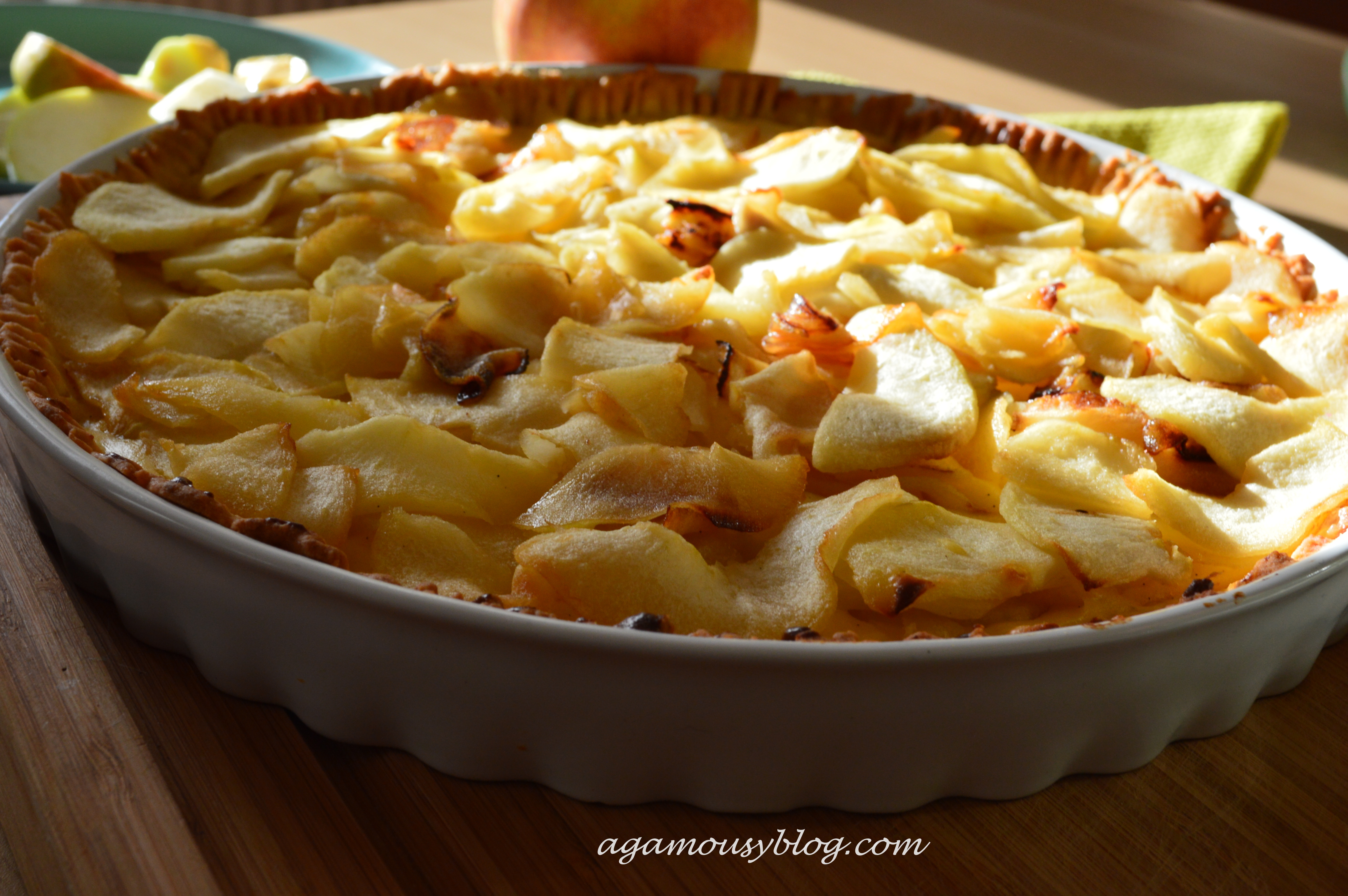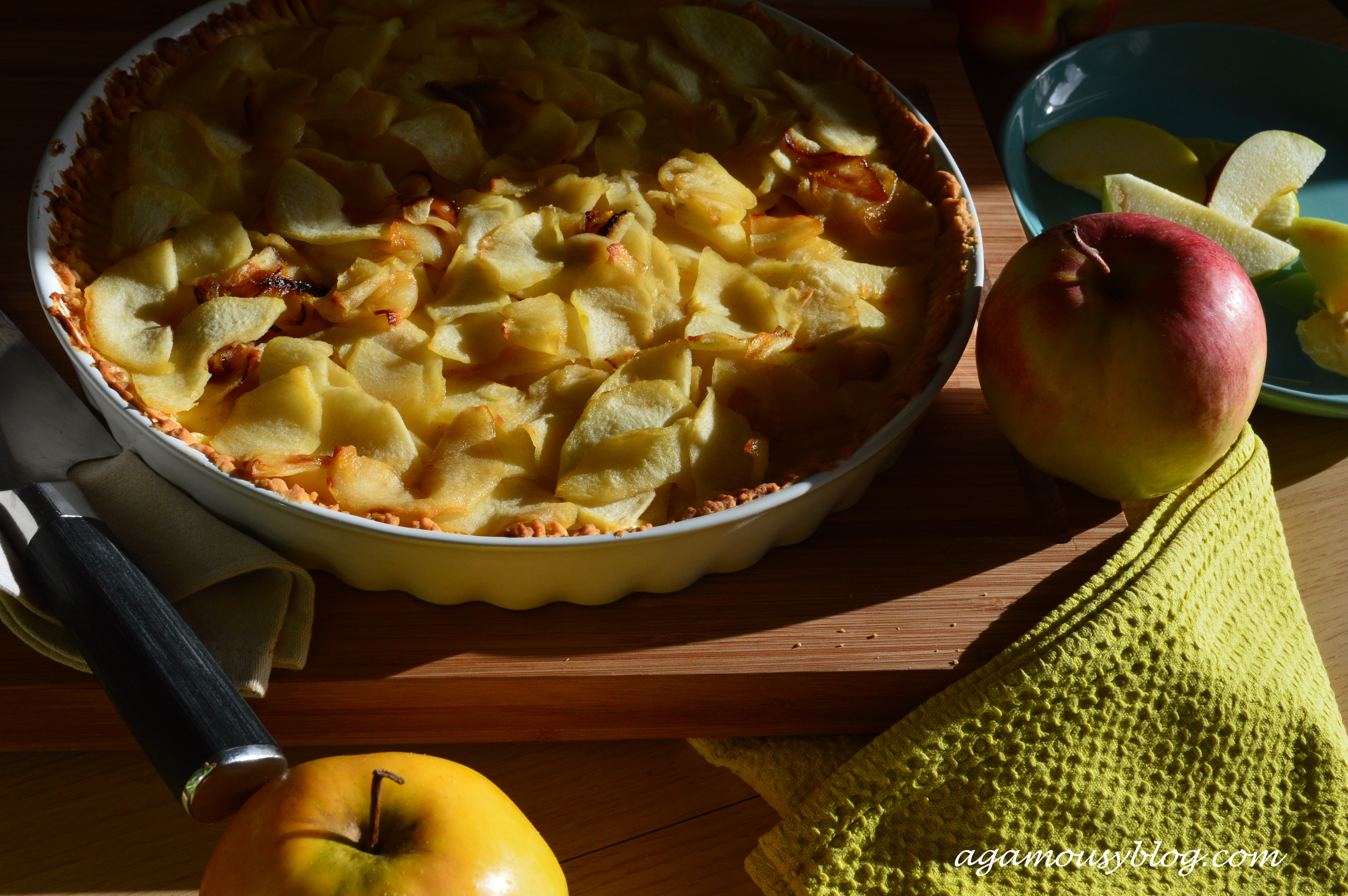 Idąc za ciosem, postanowiłam wykorzystać świeżo zrobiony creme patissiere i zrobić kolejną nowość. Jabłecznik jest jednym z moich ulubionych ciast a ta wersja trafiła na początkowe miejsca mojej listy. Hmmm ciekawe, jak by smakowała taka tarta z jagodami….. Już się nie mogę doczekać lata :)