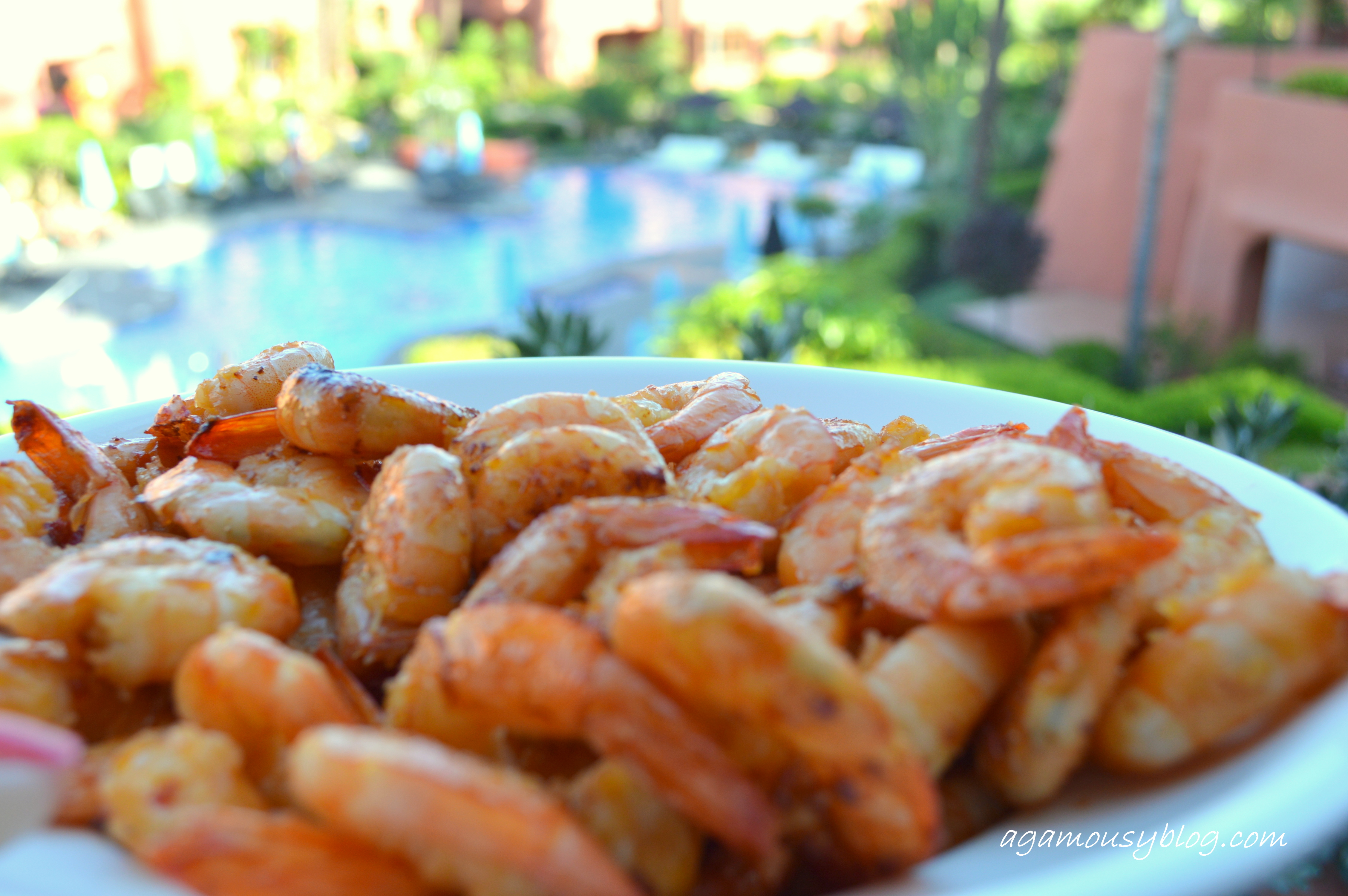 Wakacje oznaczają krewetki. W dużych ilościach. Kupujemy je wersji ugotowanej, czyli langostino cocinado. Takie same są do kupienia w Polsce, ale najczęściej głęboko mrożone, ale za to pozbawione główek i łupinek, więc nie trzeba wcześniej ich czyścić ;). Jedne i drugie przyrządzam tak samo, czyli z dodatkiem martini bianco. Owoce morza w ogóle lubią dodatek alkoholu – może to być również tequila, białe wino, czy co tam lubicie, ale martini ze względu na swoją słodycz, super się karmelizuje. W krewetkach ważny jest rozmiar – im większe, tym lepsze.
