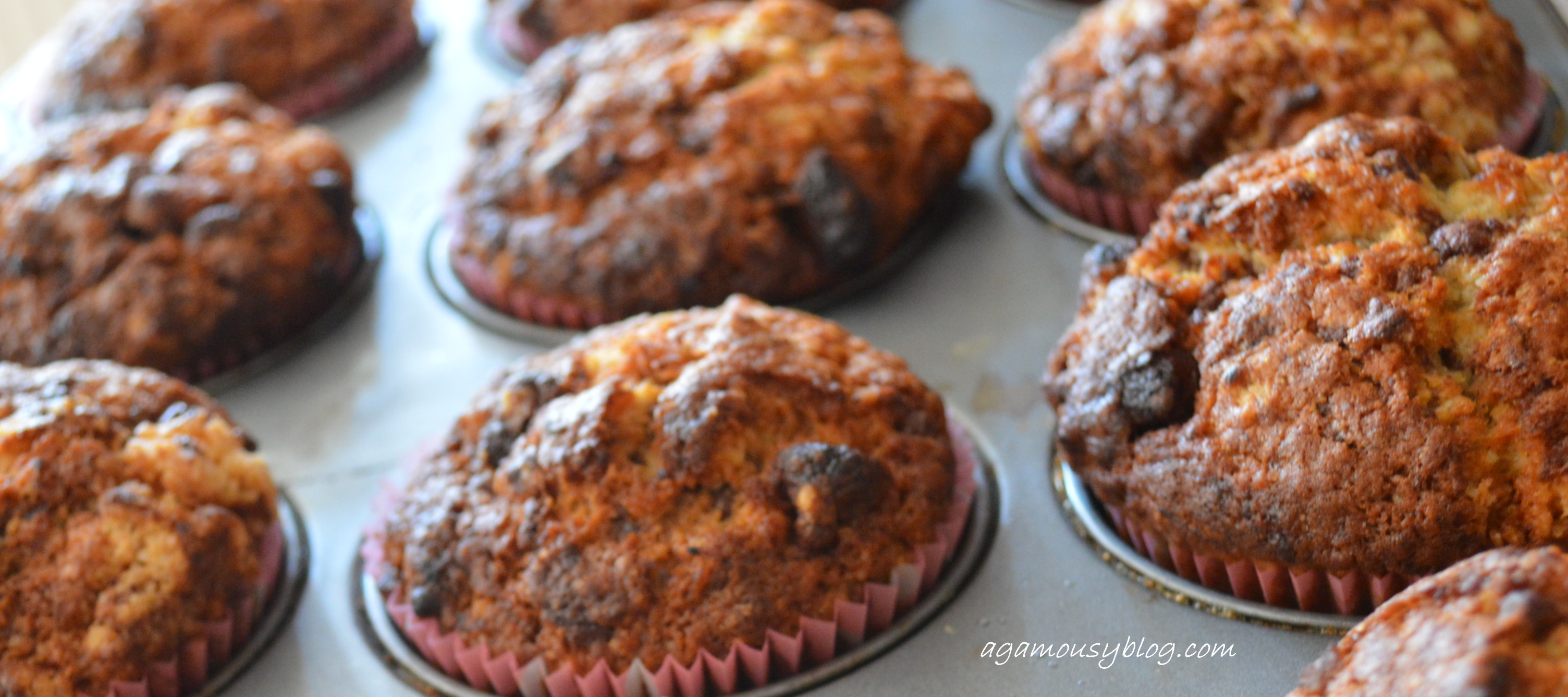 Wczoraj przyszła wiosna. Taka najprawdziwsza – ze słońcem, ciepełkiem, pierwszym grillem i rozpoczęciem sezonu na moto. Po takim dniu naprawdę straszliwie trudno jest przyjąć do wiadomości, że nadszedł poniedziałek. Dzień mijał a ja miałam w perspektywie dotrzymanie złożonej w sobotę obietnicy, czyli podarowanie pewnemu małemu głodomorowi jego ulubionej bananowej babeczki.